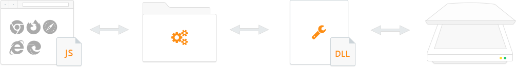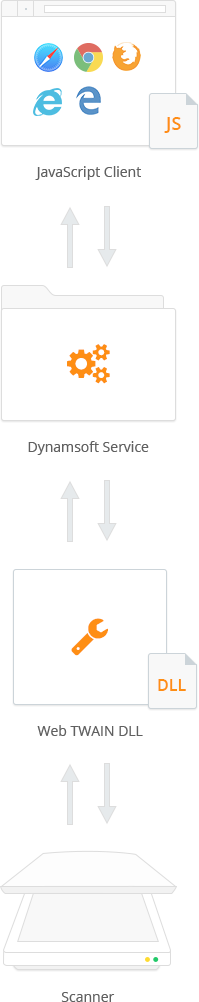 As demonstrated in the above illustration, there are three core modules in Dynamic Web TWAIN HTML5 scanning SDK: