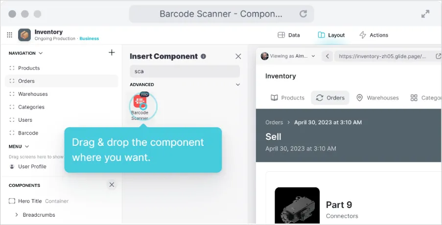 Integrating Dynamsoft Barcode Reader in the Glide platform is a game-changer. Customers in our Enterprise and Business plans can simply select the barcode scanning component and start using it immediately in their apps.