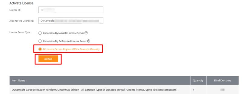 Select the 3rd option “No License Server. Register Offline Device(s) Manually” and click Activate.