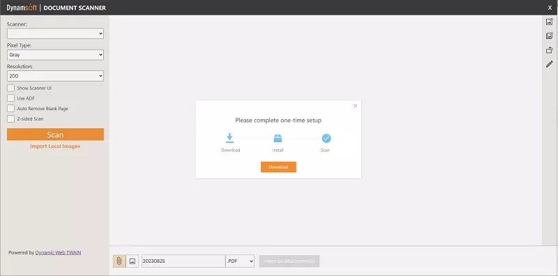 - After you’ve opened your web application, a dialog box will appear, prompting you to install the Dynamsoft Service.