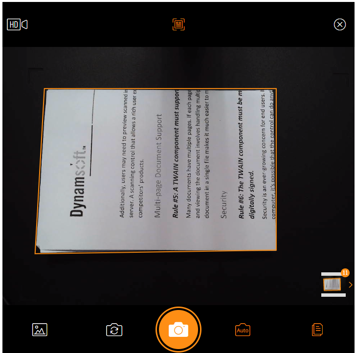 As you can see in the paragraph above, the scanDocument() API creates a full-functional widget that supports setting camera resolution, triggering document edge detection, loading images from local storage, switching between front and rear cameras, auto-capturing documents and managing multiple documents.