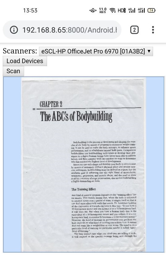 Many modern scanners support a protocol called eSCL, allowing them to be discovered and controlled over a local network. In v18, the Dynamsoft Service for Android enabled communication with these devices via HTTP, acting as a bridge between eSCL scanners and your browser-based web app.