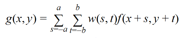In mathematics, this is known as element-wise matrix multiplication. For a filter with a size of (2a+1, 2b+1), the output response can be calculated with the following function: