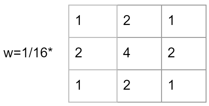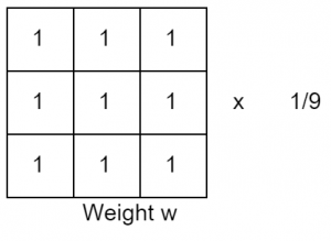 R = w(-1, -1) * f (x-1, y-1) + w(-1, 0) * f (x-1, y) + …+ w( 0, 0) * f (x, y) +…+ w(1, 0) * f (x+1, y) + w (1, 1) * f( x+1, y+1)