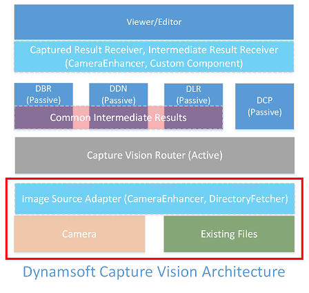 In the Dynamsoft Capture Vision (DCV) architecture, “input” refers to the source supplying images for processing, commonly called the image source.