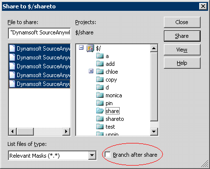 - Suppose that we are working on two projects which are virtually identical for two clients. We need to tailor program behavior in one or two files. First, we share the project $/CLIENT1 to a new project $/CLIENT2 recursively. Next, we select the few files we want to tailor in $/CLIENT2 and branch them. Now, when we modify these specific files in $/CLIENT2, the changes do not propagate to $/CLIENT1. All the other files, however, are still shared between the two projects. So, if we modify any of the shared files, the changes will be propagated.