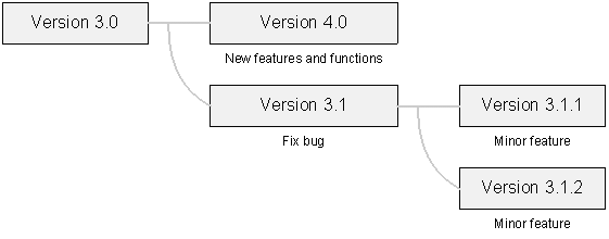 - Suppose that after we released a new Version 3.0, the R&D team starts working toward the next major release, the 4.0 version with new features and functions. We can implement it by branching all files into a new project $/Project4. If our users find bugs or need minor features in Version 3.0, we may need to work out a maintenance version, say, Version 3.1. In this case, we can create a new project named $/PATCH to represent the 3.1 version, and branch all the files from Version 3.0. Then some specific developers can fix bugs in the PATCH project while the other team members stay on the 4.0 version development.