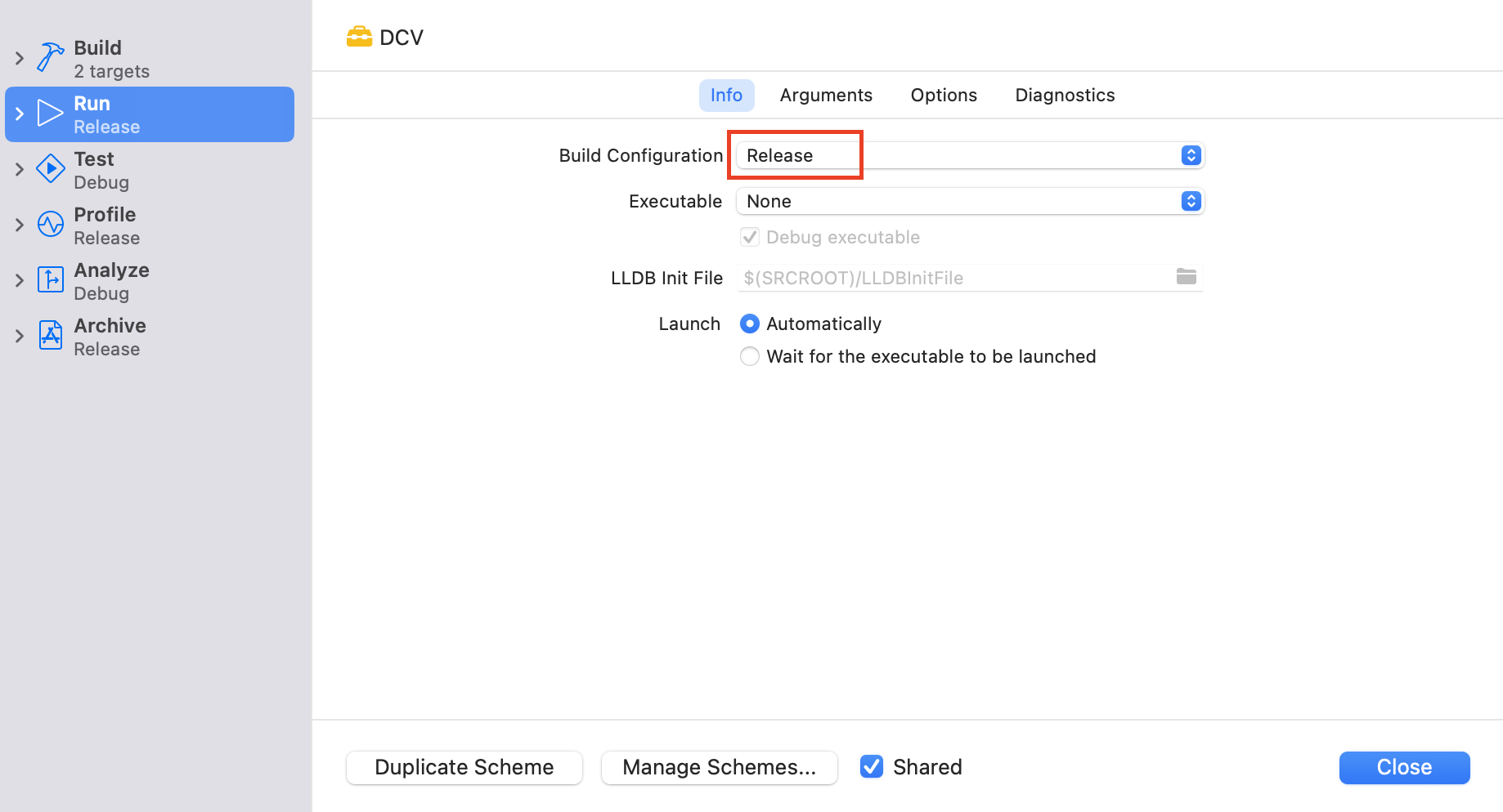 DCV.frameworkto the project by selectingFile>Add Files. Ensure theEmbed & Signoption is selected in theFrameworks, Libraries, and Embedded Content section.