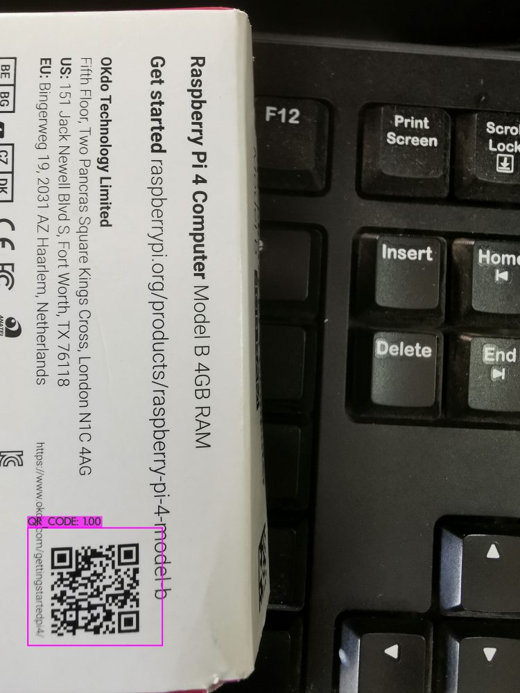 After successfully training the model, I made a quick test with the QR code image captured by my cellphone.