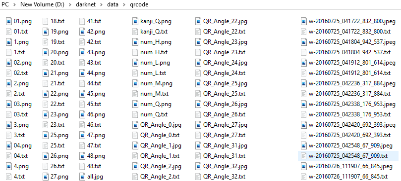In the same way, I created a new folder darknet\data\qrcode-valid and copied a bunch of files to the folder for model validation.