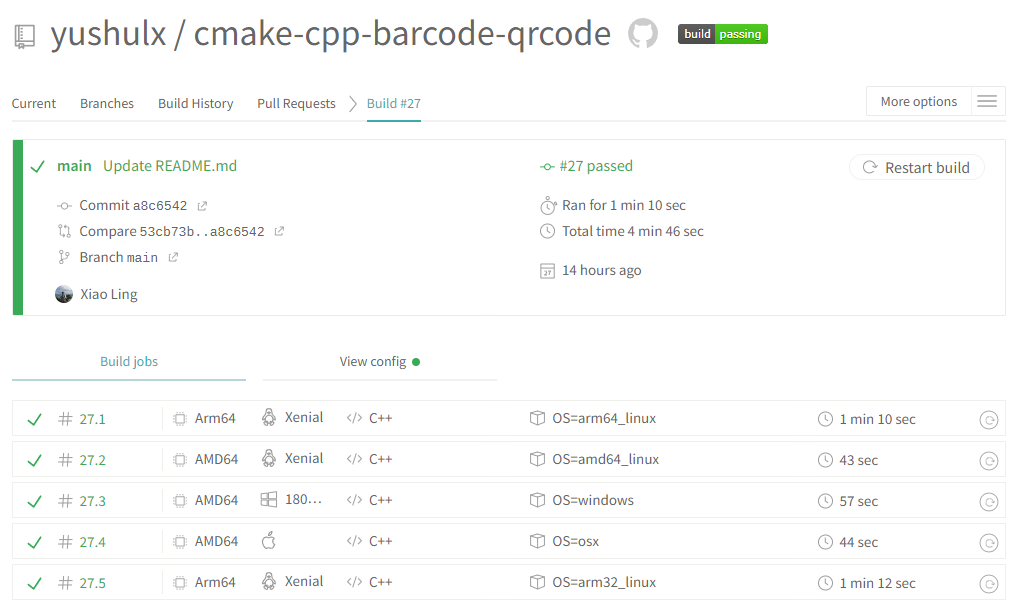 Since the target platforms include Windows, Linux, macOS, Raspberry Pi, and Jetson Nano, if you do not have theses devices, you can run the test with Travis CI by adding a Travis configuration file to the project: