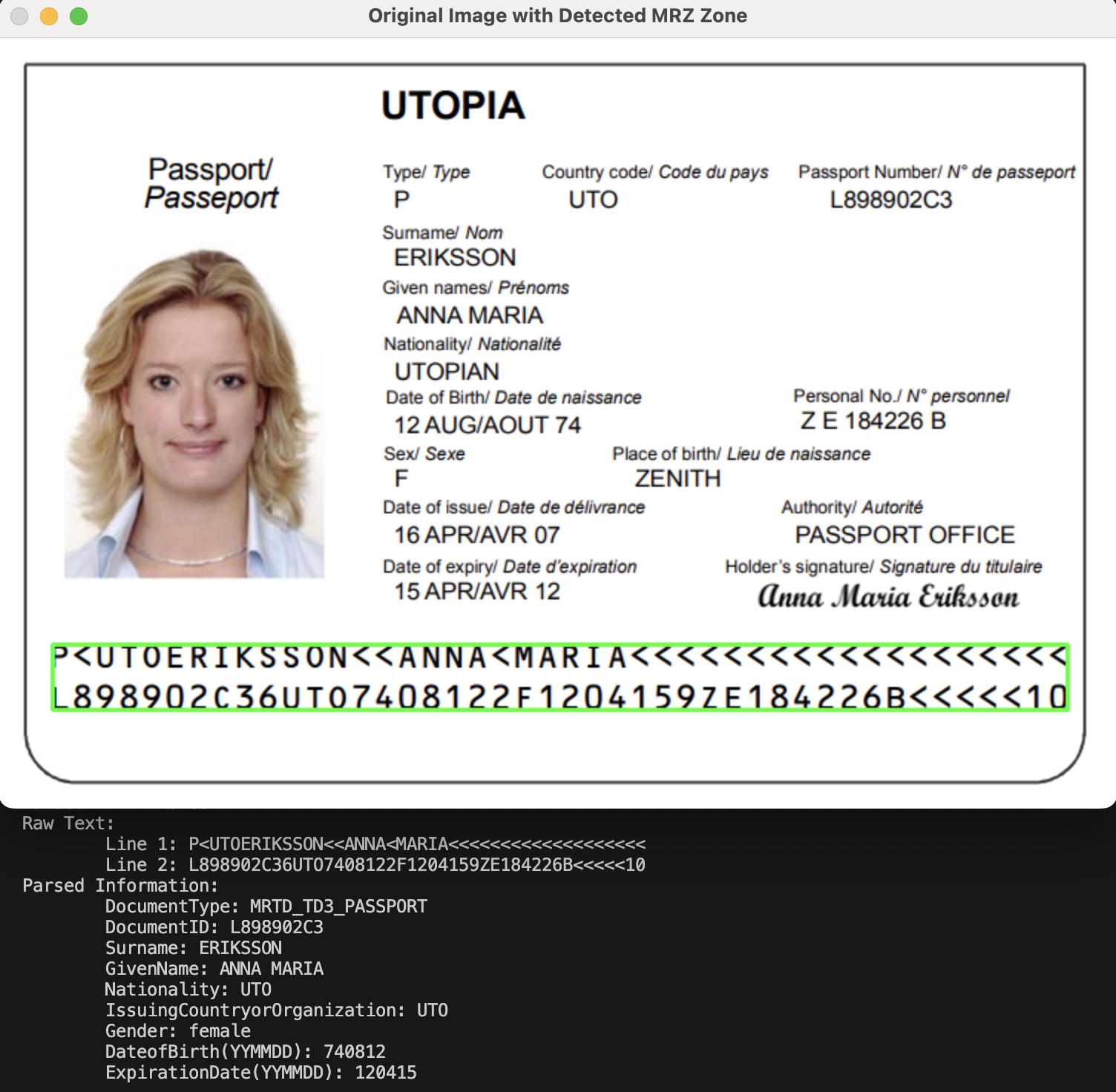 Python MRZ Recognition Demo on macOS
