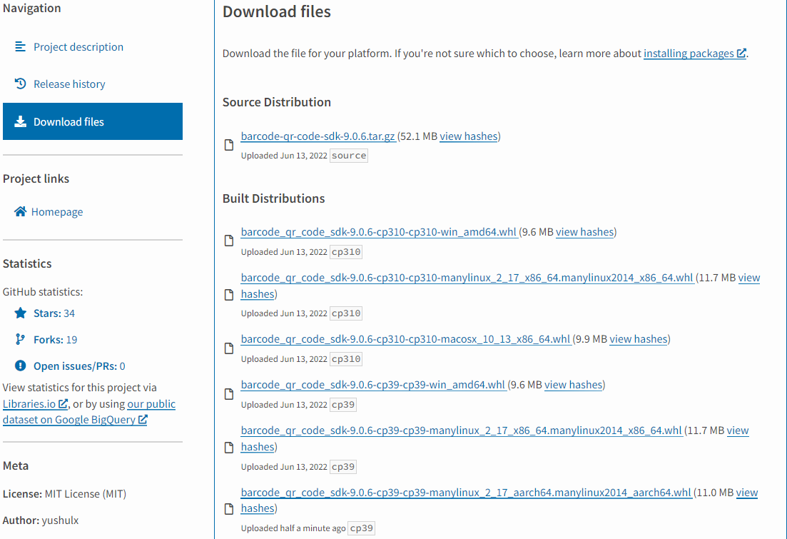 We can install and test the Python barcode QR code scanner SDK as follows: