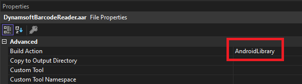DynamsoftBarcodeReader.aarand change build action toAndroidLibrary.