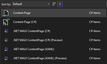 The content page template is different between Xamarin.Forms and .NET MAUI.