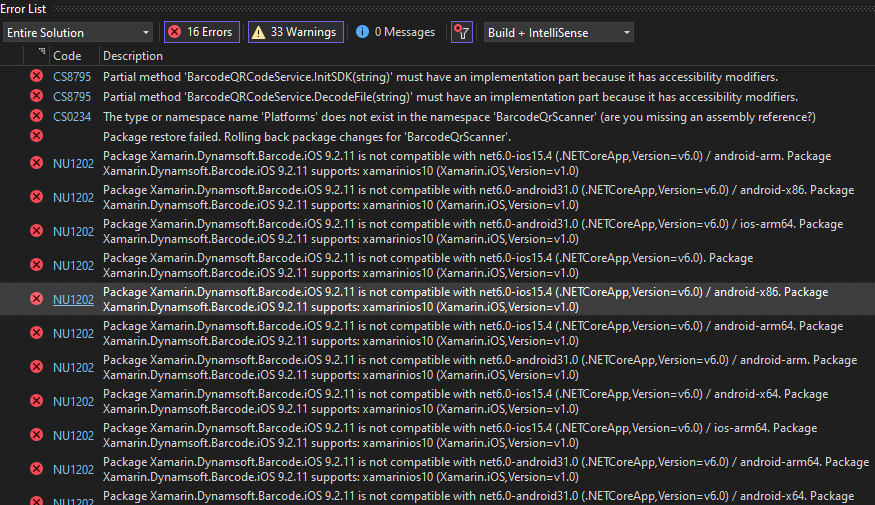 Barcode.NET.Mobile is a binding library for Dynamsoft Barcode Reader Mobile SDK. It is a substitution for Dynamsoft Xamarin Barcode Reader SDK, because Xamarin NuGet packages are not compatible with .NET MAUI projects. You will suffer from build errors if you use Xamarin Barcode Reader SDK for iOS.