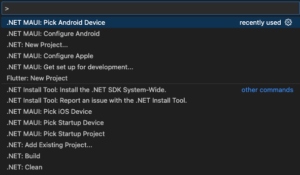 > .NET MAUI: Pick Android Deviceor> .NET MAUI: Pick iOS Deviceto select a device.