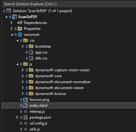 Next, copy the source code and static resource files from the relatively-complete-doc-capturing-workflow sample into your project’s wwwroot folder.