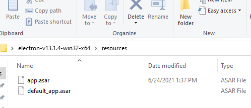 electron.exeto check whether your application runs successfully. - Compress the entire folder into a zip file for distribution.