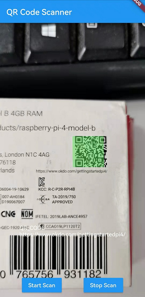 • dynamsoft_capture_vision_flutter - A Flutter plugin for capturing the mobile camera stream and scanning barcodes, QR codes, DataMatrix, and other mainstream 1D/2D barcode symbologies. It is built and maintained by Dynamsoft. You need to apply for a trial license of Dynamsoft Barcode Reader and update the LICENSE-KEY in lib/main.dart to run the project.