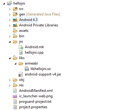 Copy the OS-dependent shared libraries to the jni/platforms folder.