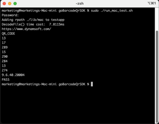 As with Windows and Linux, it’s crucial to pass the Go tests to verify the functionality of the Go barcode reader module on macOS.