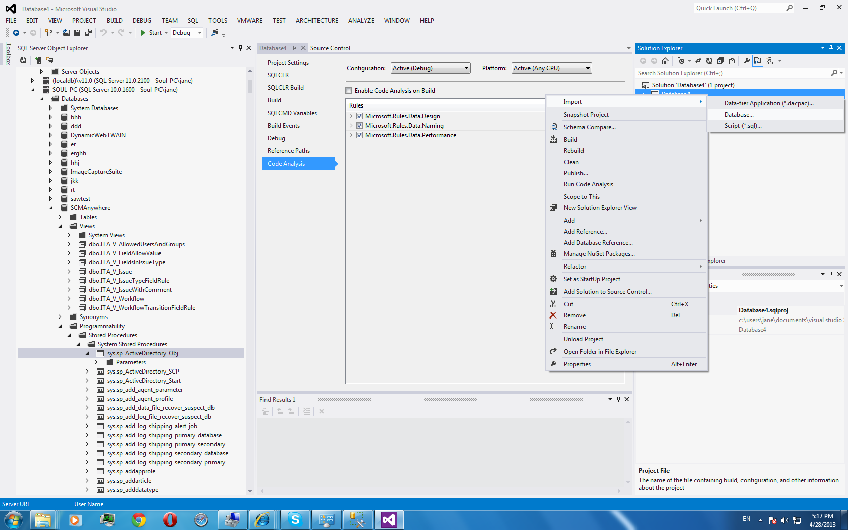 - Launch VS 2012. Open an existing SQL Server Database Project or create a new one.
