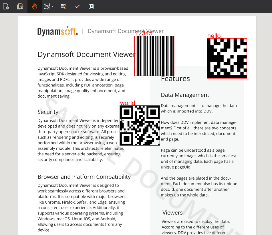 In the latest version of Dynamsoft Document Viewer, a flattened property has been added to the annotation object, making it more flexible and efficient to flatten target annotations into a document. When barcodes are inserted as annotations into PDF documents, they are typically stored as vector graphics and are unreadable until they are flattened into the document. This process converts the vector graphics into raster images.