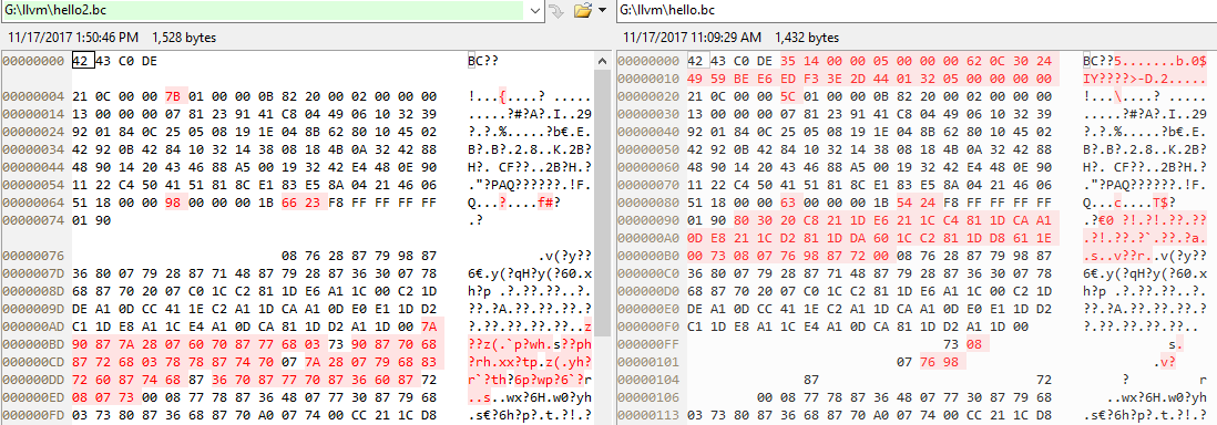 We can compare the bc files that generated by emcc and Clang.