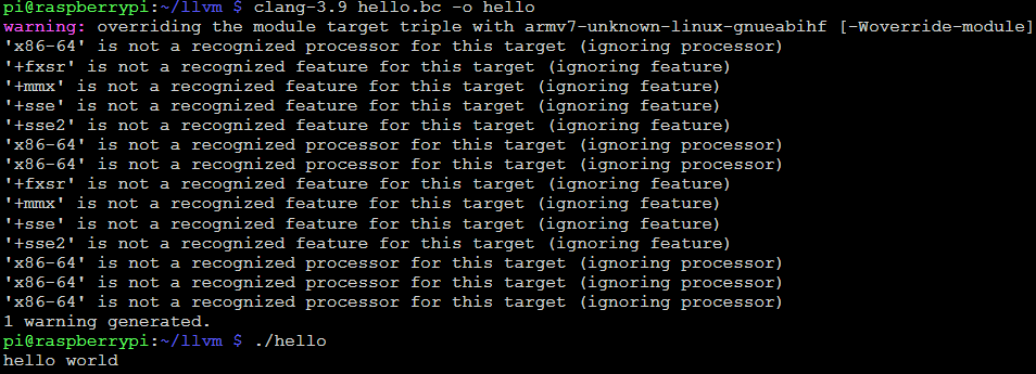 clang hello.bc -o hello