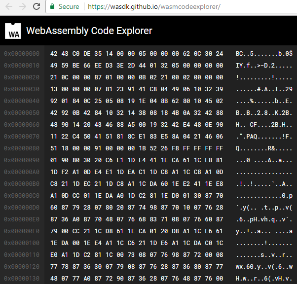 If you don’t have a hex editor installed, you can view the bc file with wasmcodeexplorer online.