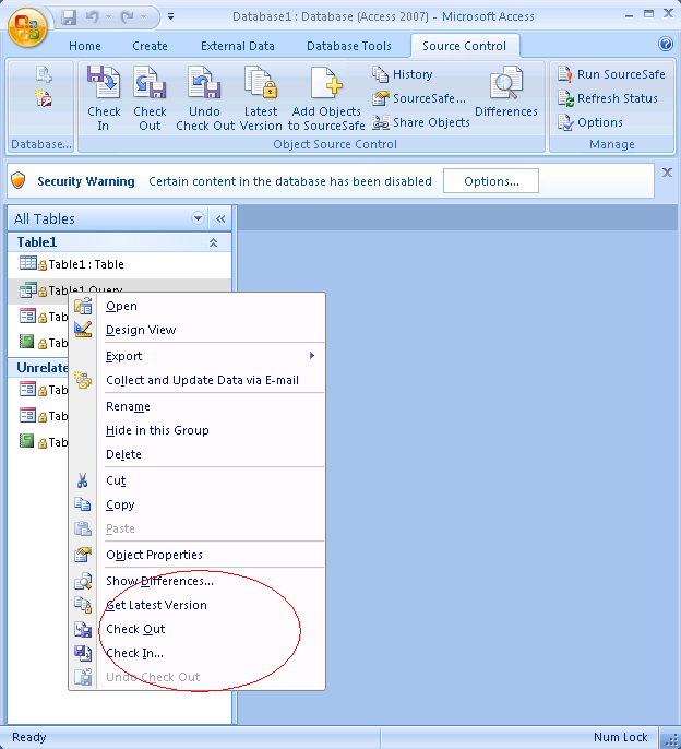 Using Visual SourceSafe - Integrating VSS with Access 2007