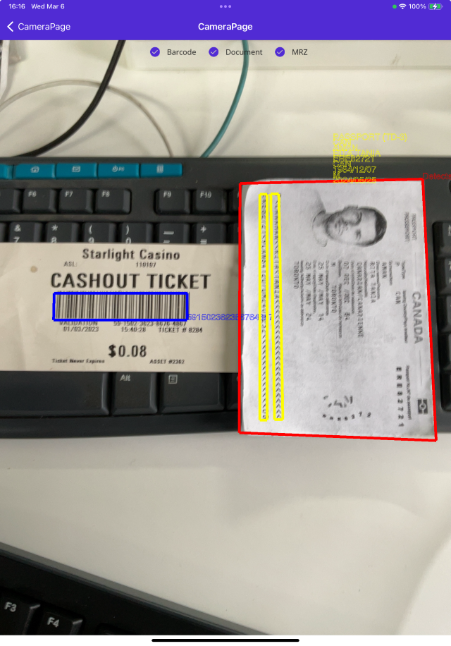 Utilizing CaptureVision 2.0.1 and BarcodeQRCodeSDK 2.3.7, we are now able to finalize the Capture.Vision.Maui NuGet package by incorporating iOS-specific code within Platforms/iOS/NativeCameraView.cs. The code snippet below illustrates the process of detecting documents and MRZ from camera images on iOS.
