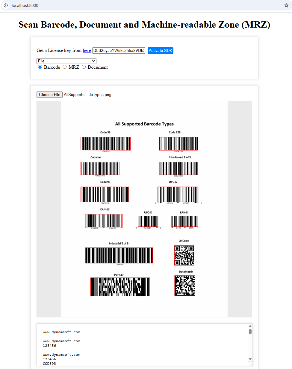 Demo Video: Web Scanner for Barcode, QR Code, MRZ, and Document