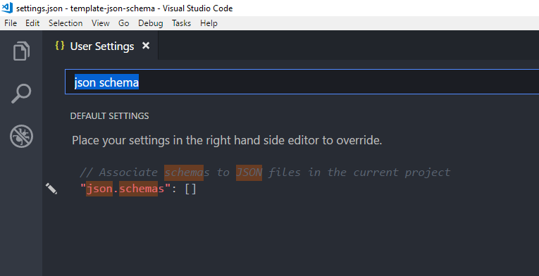 Visual Studio Code features IntelliSense which helps developers quickly write code. To use IntelliSense for JSON files, you need to configure JSON schema in user settings. Press F1 to open user settings and search for `json schema’. By default, there is an empty array. You can read vscode-docs to learn how to add custom JSON schemas for corresponding JSON files.