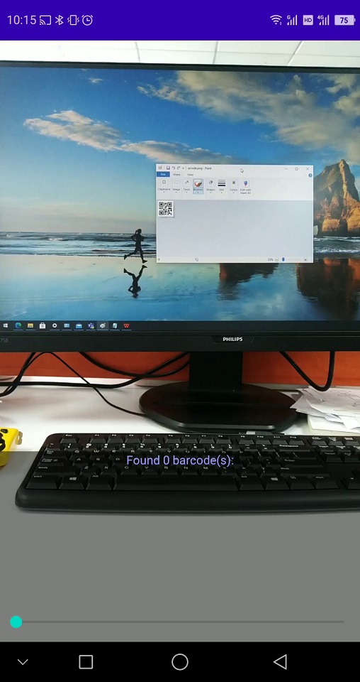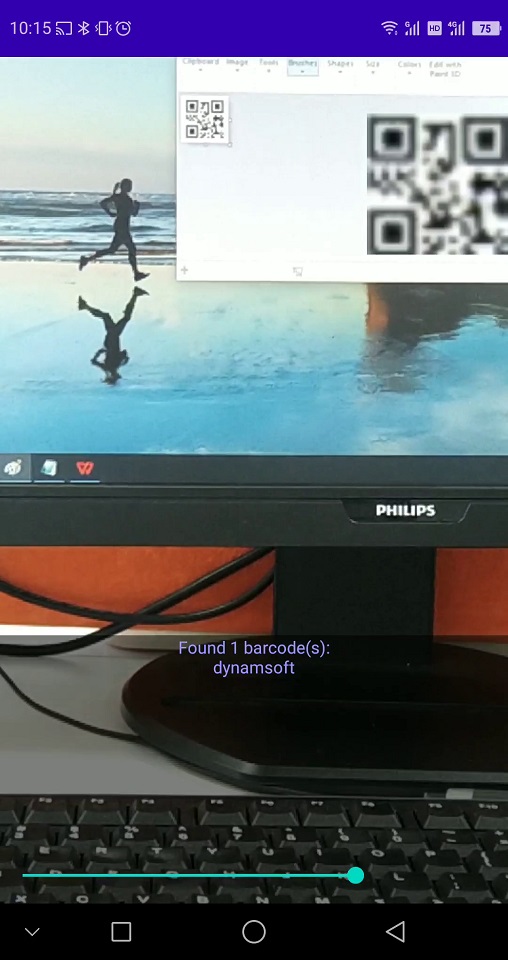 An Android barcode scanning app using Dynamsoft Barcode Reader is made for illustration as shown below (In the image, the app finds the code, zooms in, and runs super resolution to achieve successful decoding).
