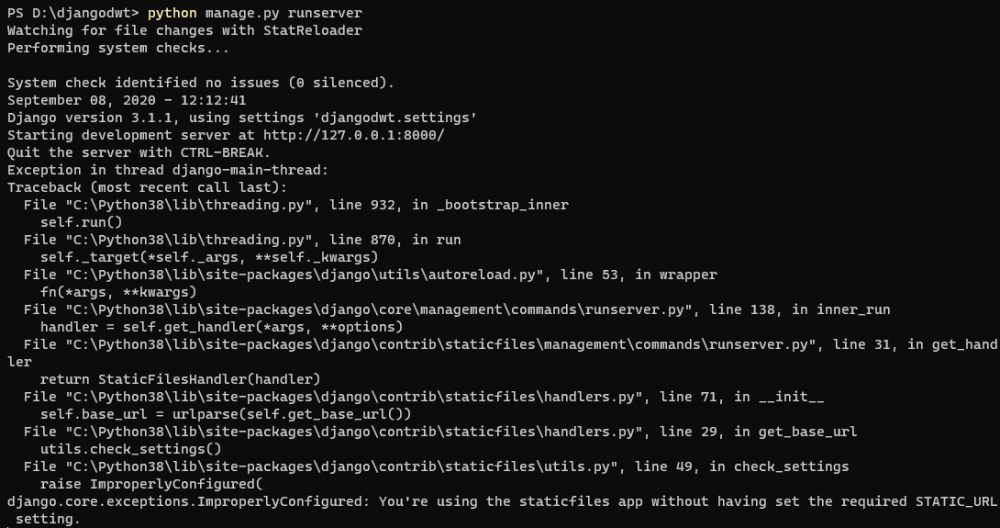 Within the app folder {project_folder}/dwt, we create a file named urls.py and insert the code below: