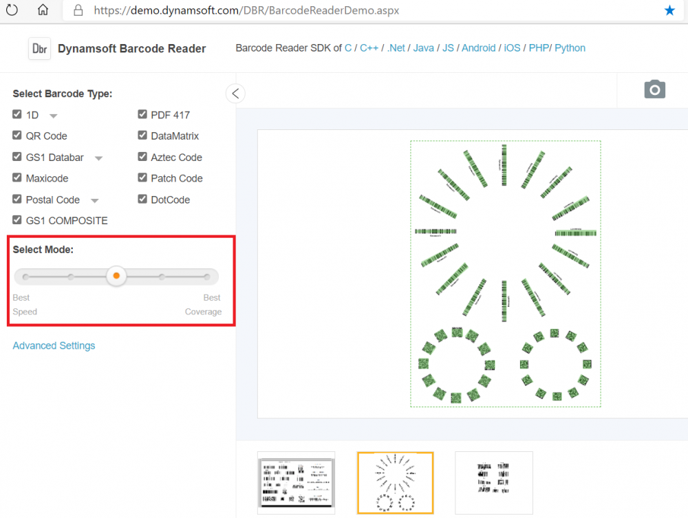 If you have never tried Dynamsoft Barcode Reader SDK, you can have fun with the online barcode playground, simply changing the mode to compare the performance difference straightforwardly.
