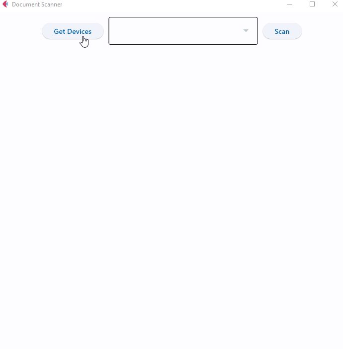 buttonDeviceis used to get all available scanners.def get_device(e): devices.clear() dd.options = [] scanners = scannerController.getDevices( host, ScannerType.TWAINSCANNER | ScannerType.TWAINX64SCANNER) for i, scanner in enumerate(scanners): devices.append(scanner) dd.options.append(ft.dropdown.Option(scanner['name'])) dd.value = scanner['name'] page.update() -