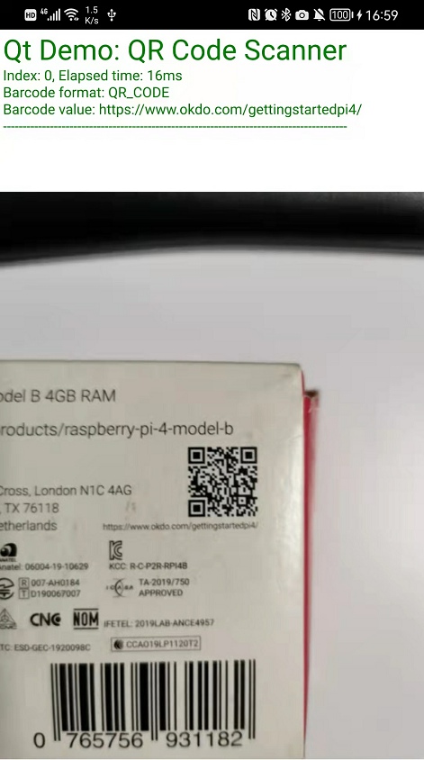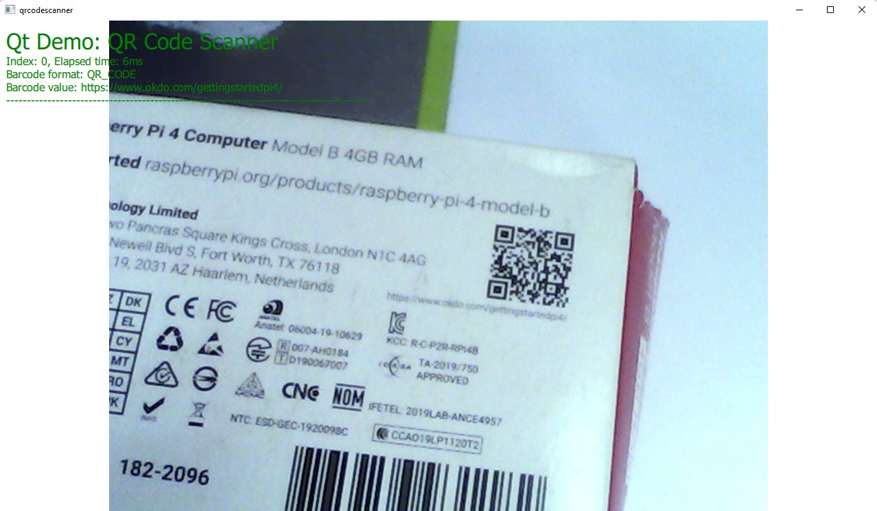 Once the image processing is complete, the imageProcessed signal is emitted. The onImageProcessed slot is subsequently called to display the barcode and QR code information: