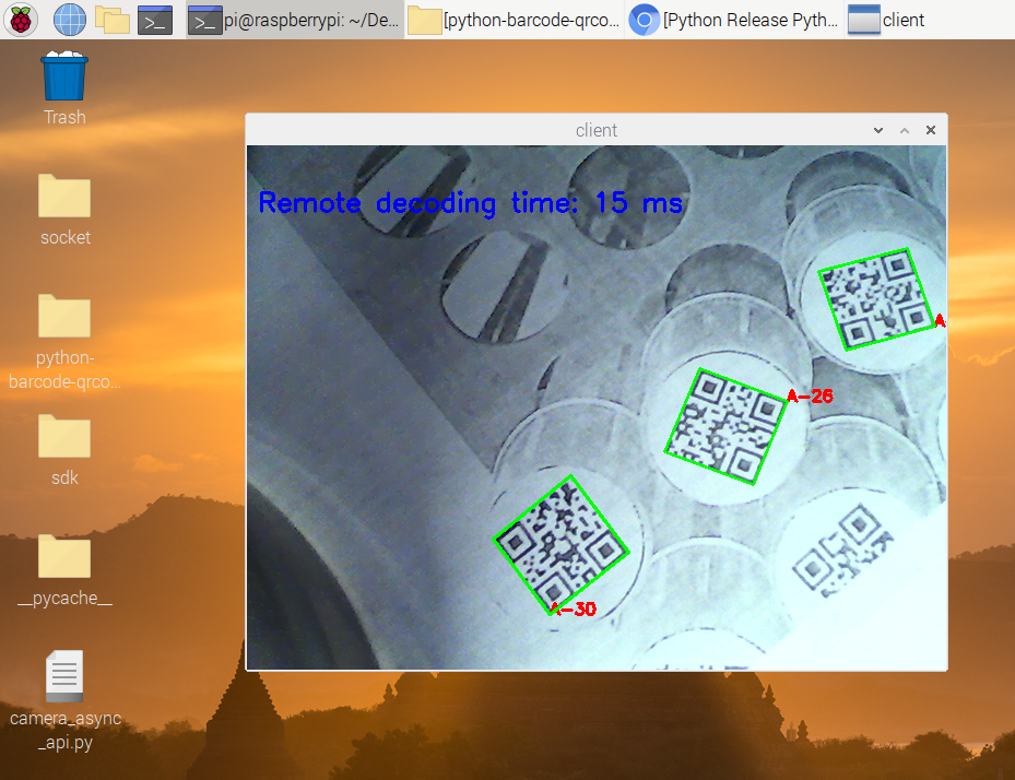 When running the client.py and server.py, you need to change the IP address and port. If the network transmission is stable, the server-side barcode scanning solution can achieve good performance.