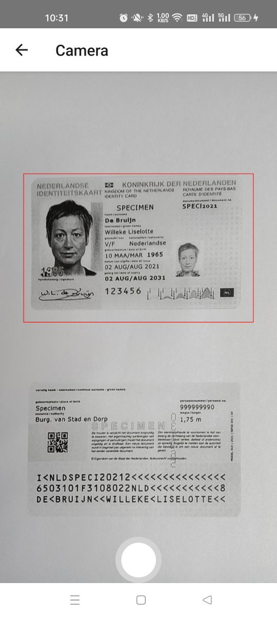 useEffect(() => { if (props.route.params?.base64) { let base64 = props.route.params?.base64; if (isFrontRef.current === true) { setFrontImageBase64(base64); }else{ setBackImageBase64(base64); recognizeIDCard(base64); } } }, [props.route.params?.base64]); const recognizeIDCard = async (base64:string) => { const OCRResult = await decodeBase64(base64) if (OCRResult.results.length>0) { let lineResults = OCRResult.results[0].lineResults; let MRZLines:string[] = []; for (let index = 0; index < lineResults.length; index++) { const lineResult = lineResults[index]; MRZLines = MRZLines.concat(lineResult.text.split("\n")); } console.log(MRZLines); let parsed = parse(MRZLines); let result = { Surname:parsed.fields.lastName ?? "", GivenName:parsed.fields.firstName ?? "", IDNumber:parsed.fields.documentNumber ?? "", DateOfBirth:parsed.fields.birthDate ?? "", DateOfExpiry:parsed.fields.expirationDate ?? "" } console.log("set parsed result"); console.log(result); setParsedResult(result); return; } Alert.alert("","Failed to recognize the card."); } -