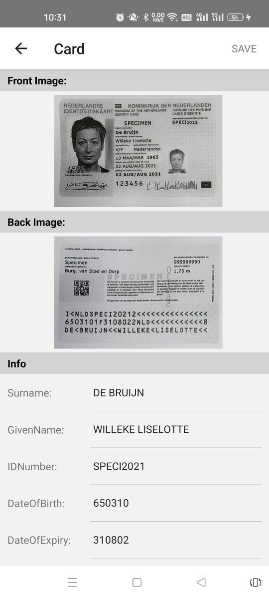 When the back image is captured, try to recognize the MRZ lines of the ID card and extract the info.