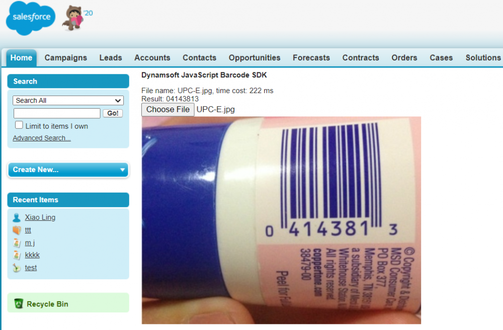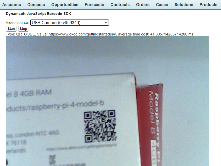 You can also create another Visualforce page for decoding barcodes from a camera video stream and deploy it to Salesforce.