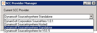 Choose SourceAnywhere Standalone as the current SCC provider.