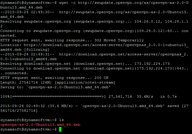 wget -c http://swupdate.openvpn.org/as/openvpn-as-2.0-Ubuntu13.amd _64.debInstall: