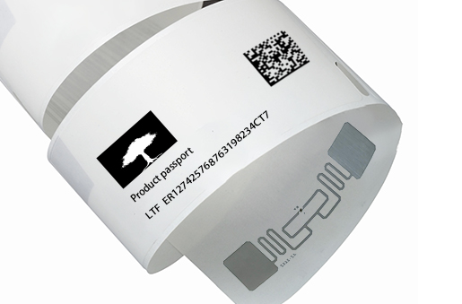 Construction materials are tagged with RFID labels that also include QR codes, which are used for identifying individual items during inventory checks and refurbishment processes.