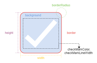 The border style of checkbox. It contains three parts, borderWidth, borderStyle and borderColor.
