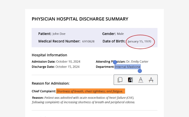 Annotate patient records to highlight key findings, note observations or suggest further tests, ensuring better communication between providers and continuity of care.