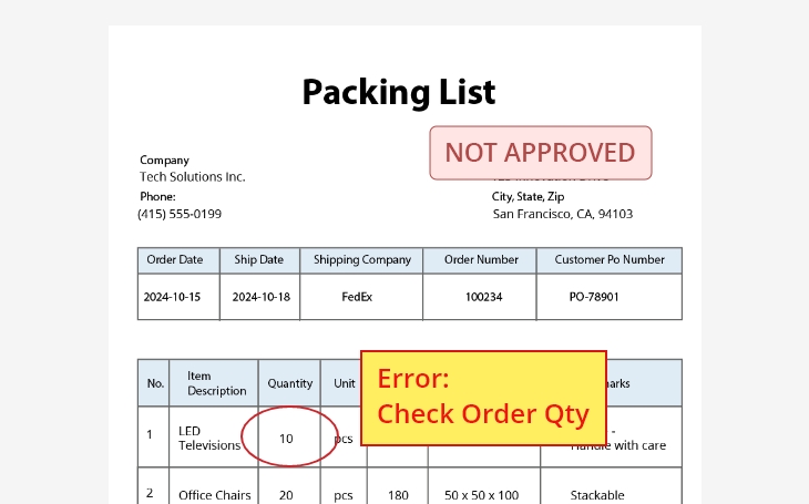 Pinpoint quantity mismatches or damaged goods in shipping documents for later action or review.